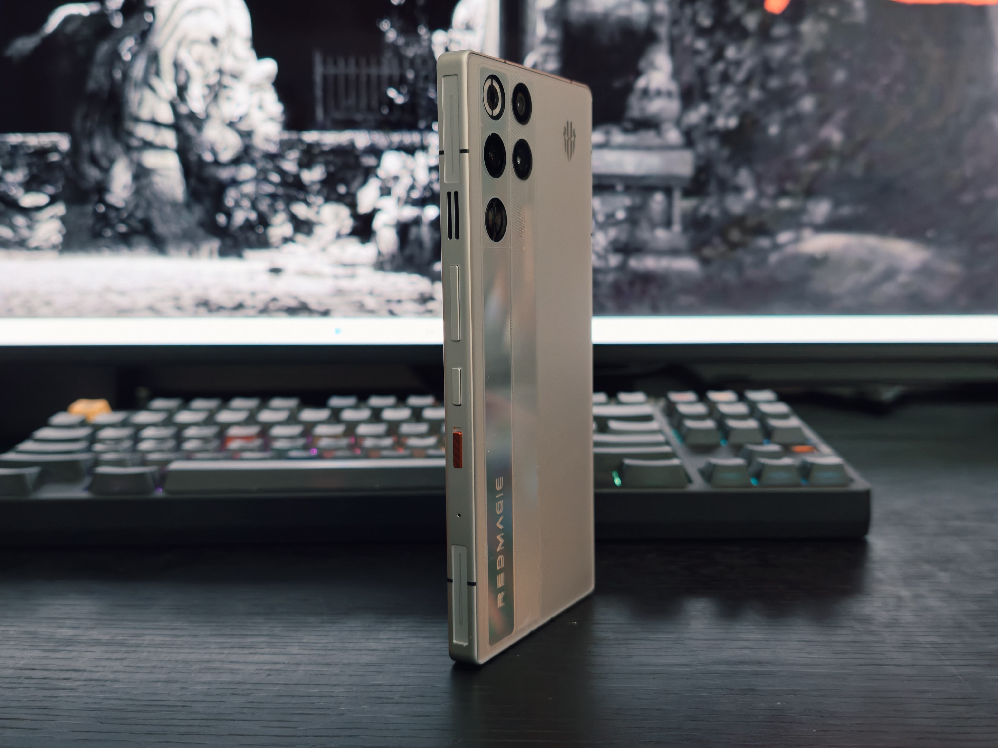 在 2023-2025 年手机行业集体追求摄像头 “堆料凸起” 的浪潮中,红魔的这份坚持显得尤为珍贵。为实现这一设计,工程师在 8.9mm 的纤薄机身内完成了水冷模组、8000mAh 电池与 4D 冰阶 VC 的精密堆叠,用结构创新诠释了 “纯粹游戏体验” 的设计初心。开机瞬间,背板红魔 Logo 亮起 RGB 光效,与隐藏式风扇的光影呼应,电竞仪式感拉满。