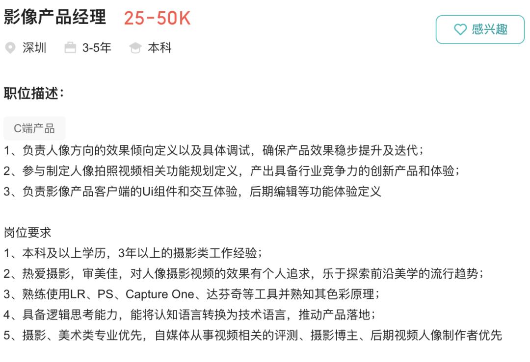 当然,如果单纯看以上岗位,也有可能是人像摄影APP,或者是手机。