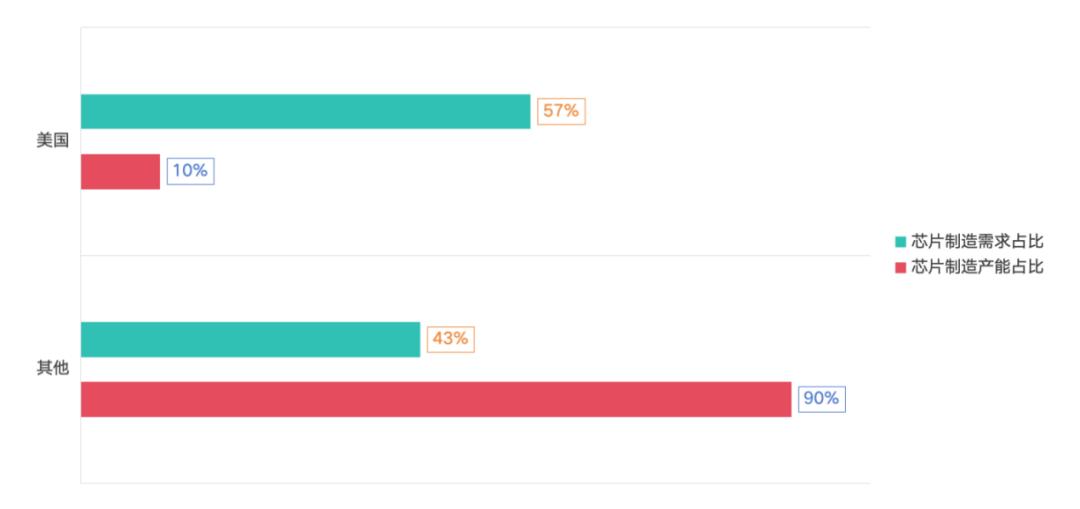 图:美国芯片制造需求、芯片制造产能占全球比例 资料来源:Yole、穆迪,36氪整理