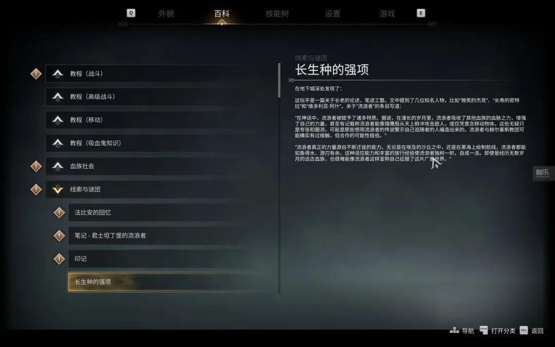 这等于说《吸血鬼:避世血族2》本质上是一款线性的动作冒险游戏,它没有分支剧情,没有多样的任务解法,只是披上了一层“扮演”和“选择”的外衣。它完全舍弃了原来的规则,只是把一切规则塞到了名为“百科”的设定中,连同世界观一起打包丢给玩家。