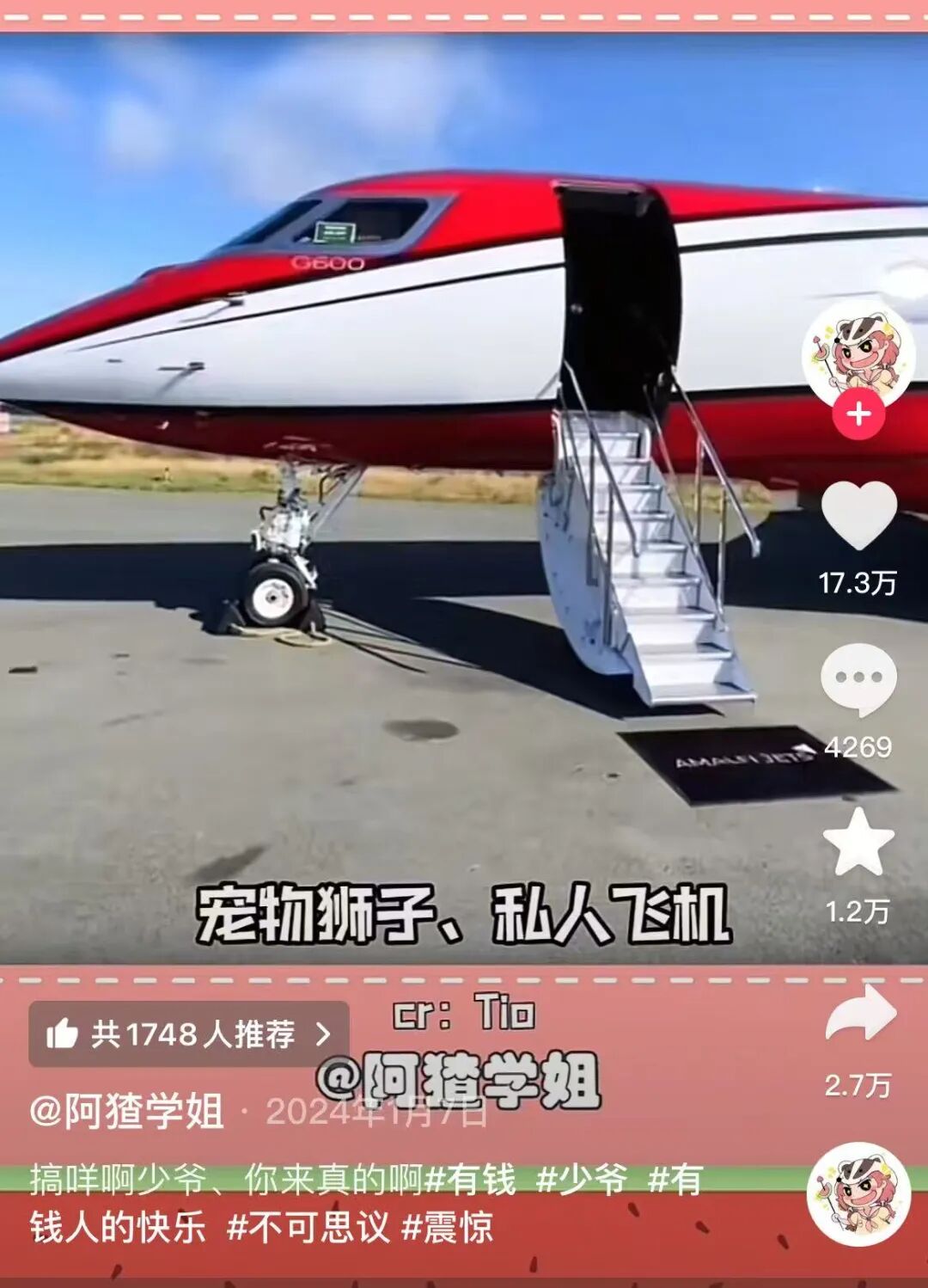 与此相对的B面,是精致的幻象。回顾最早一批在海外拍视频的博主,要么通过分享生活、工作和美食,照见高学历的中产阶层在国外自如的生活状态,要么在短视频里插科打诨,搞直播,与同在海外的华人一起玩耍。此类博主主要还是展示符合大众想象的留学生日常,豪车、别墅、西餐,构建网友对留学的初始想象。