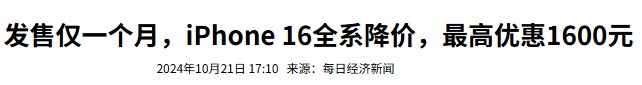 再结合 iPhone 16 系列只发售一个月就光速滑铲降价的策略,把这几条综合起来看,其实 iPhone 16 系列销量不太好,已经是大家心知肚明的事情了。
