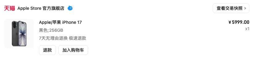 首先,大伙可能已经知道的是 iPhone 17 的起售价格依旧和去年的 iPhone 16 一样,是 5999 元。