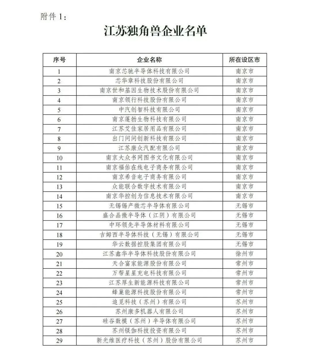 2023年江苏独角兽企业名单,鑫华半导体上榜