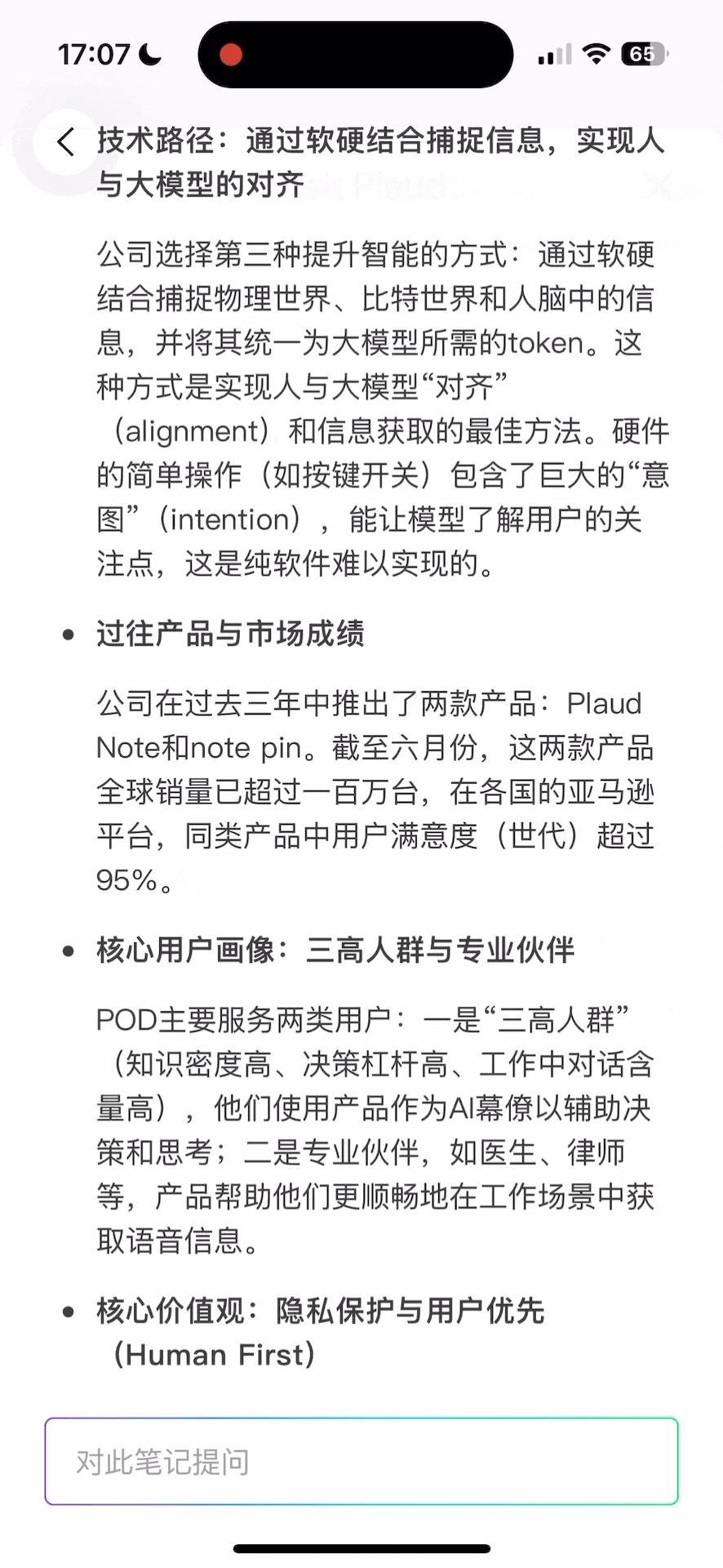 智能涌现:回到“AI work companion”的问题。为什么Plaud做出这样的选择?