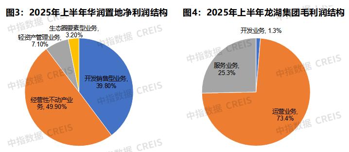 从利润贡献看,华润、龙湖非开发业务贡献超过六成的利润。2025上半年,华润置地开发销售业务贡献净利润占比为39.8%,非开发销售业务贡献净利润超过60%。龙湖集团开发销售业务贡献利润占比仅为1.3%,非开发销售业务贡献利润占比超过90%。
