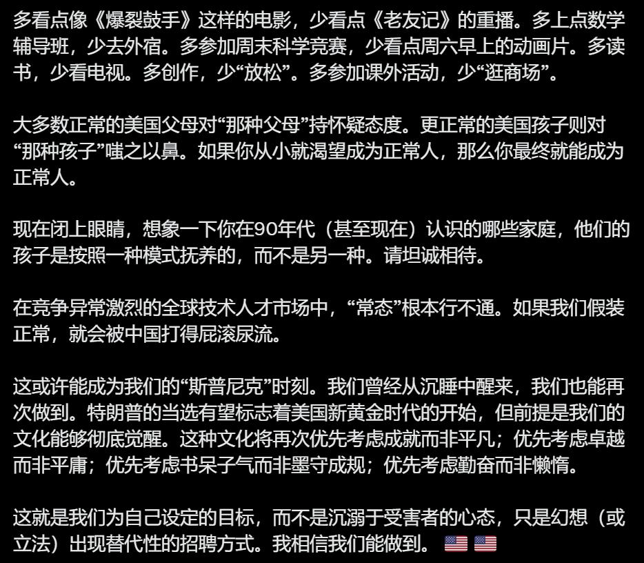 只能说,特朗普身边的支持者们,对“让美国再次伟大”有着完全不同的理解,有人觉得,应该是不择手段让国家科技实力上再次领先,有人觉得,让本土白人重新夺回领导地位更重要。