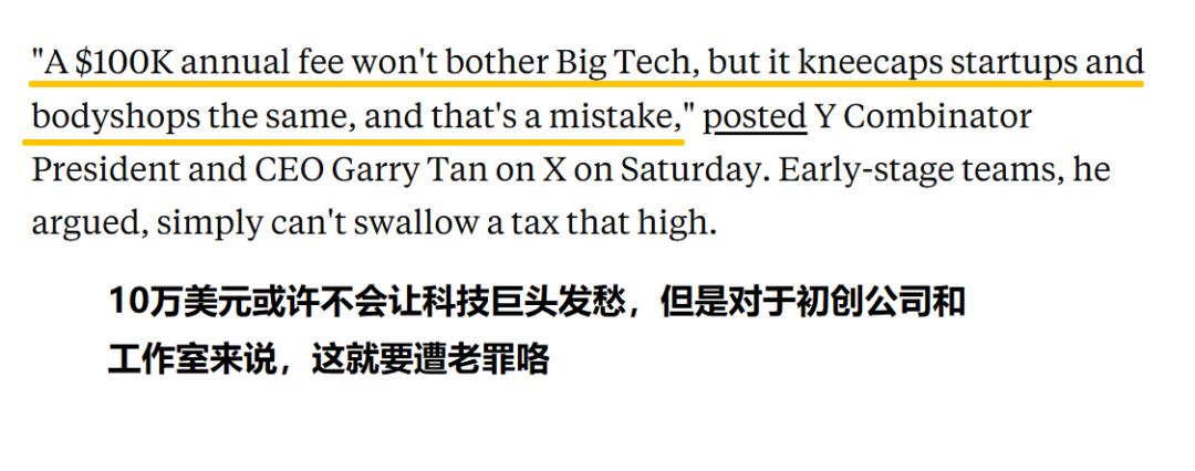 所以,新规一出,硅谷哀嚎遍野,觉得自己命根子都没了。亚马逊、Meta等巨头估计是怕树大招风,没敢明着批评这个涨价规定,但一些初创企业和小公司,本来就没有多少家底,现在还徒增一笔人力成本,当场就绷不住了,直接实名制在媒体上开骂。