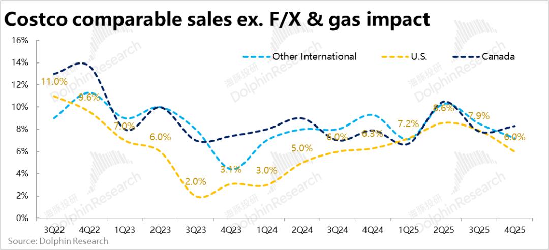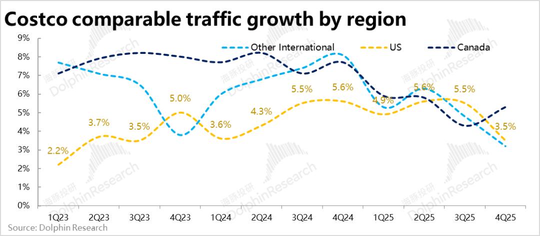 类似的,加拿大地区则因本就客流量增速依然不错,同店销售增速也并未明显下滑。
