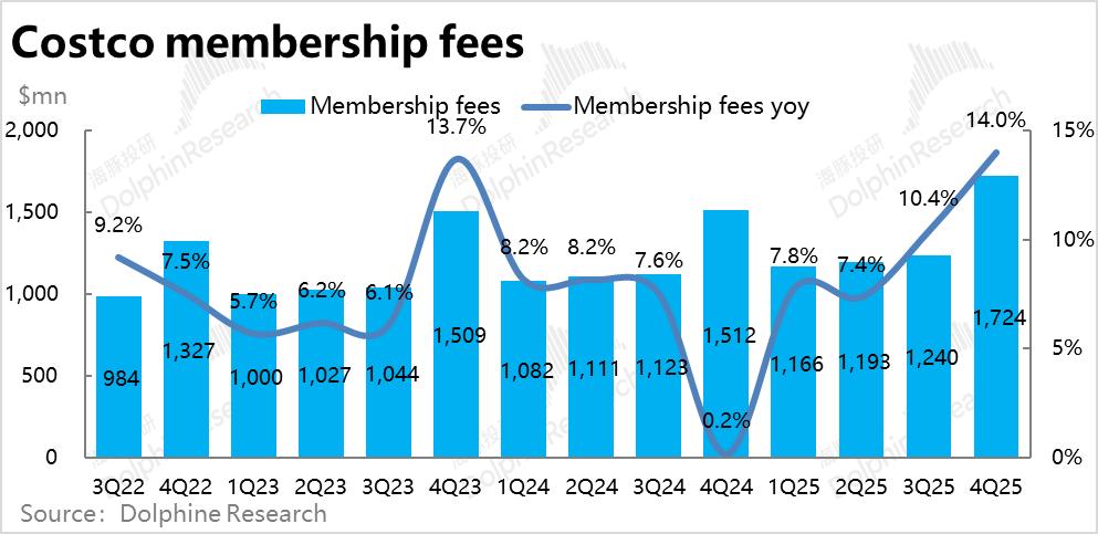 绝对体量不高但贡献可观利润的会员费收入本季约$17亿,同比大幅增长14%,明显提速,也跑赢预期。