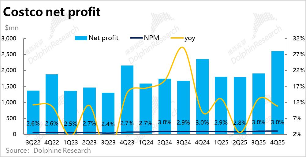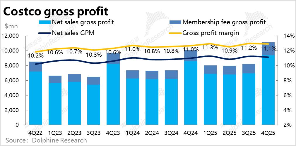 具体来看,本季度商品销售毛利率为11.13%同比提升了13bps,使得商品毛利润额$94亿,同比增长9.3%,跑赢收入增速且略好于市场预期。