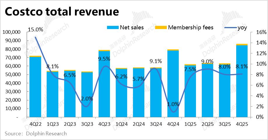 全球折扣零售王者—Costco于9月26日美股盘后,发布了截至8月底的2025财年4季度财报。大体上Costco的也就增长仍是比较平稳的,收入和经营利润双双维持8%~9%的增长,但也暴露出了一些潜在的问题,具体来看:
