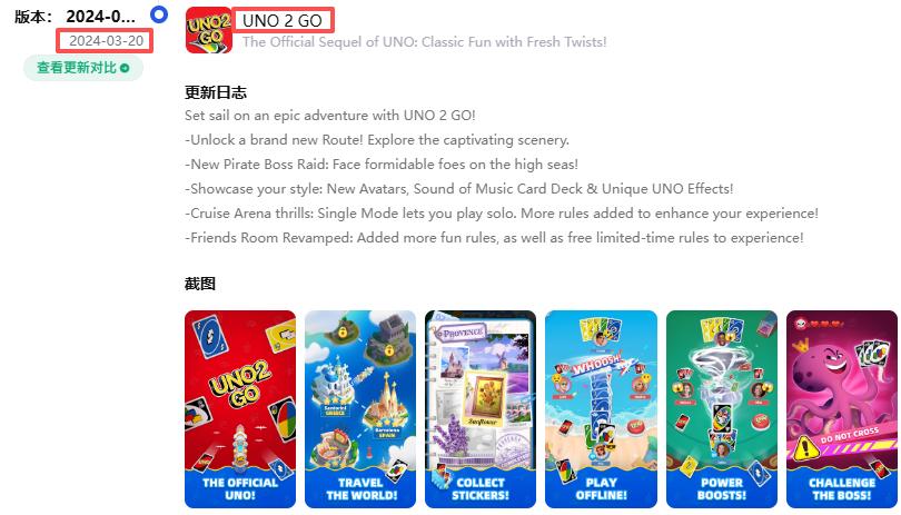 直到2024年3月中下旬其上架巴西、加拿大、西班牙、澳大利亚、印度以及印尼的Google Play正式开启第一阶段的小规模测试,彼时游戏名还是《UNO 2 GO》,日下载量及日流水最高都不超2000,基本在三位数浮动。