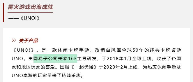 而就在美泰163建立之初,其内部便成立首款产品《UNO!™》的项目组,2018年初游戏上线了上线了Facebook Instant Games版本,短短3天就有百万用户涌入,之后每天新增更能达到几十万。2018年游戏进入软启动和优化测试阶段,直到2019年1月正式上线开测,2020年2月国服《一起优诺》上线。