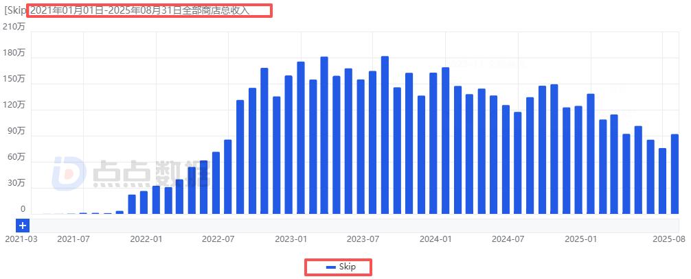 2024年12月其下载量猛增至19.3万,环比增长1654%,次月也就是2025年1月,月下载量进一步增长至56.7万,之后直到今年8月虽然有所下滑,但基本稳定在35万至40万之间;相比与下载量的灵敏反应,流水在2025年1月才有明显反馈,环比增长236%达到13.2万元,之后略有下滑,但基本在5万至11万之间浮动。