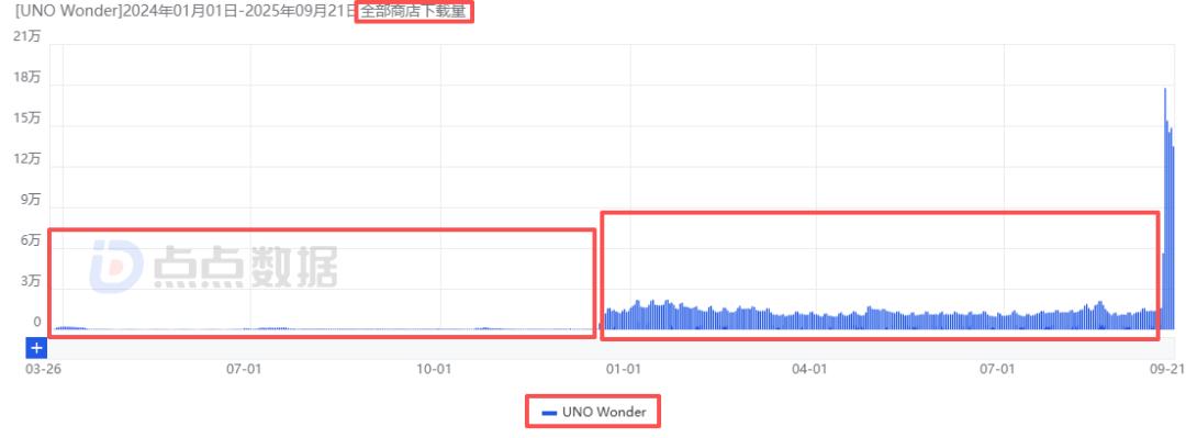 结合公开资料及点点数据来看,《UNO Wonder》早在2023年3月甚至更早一些便对外曝光,同时开启素材测试,但并未产生可被统计的数据。