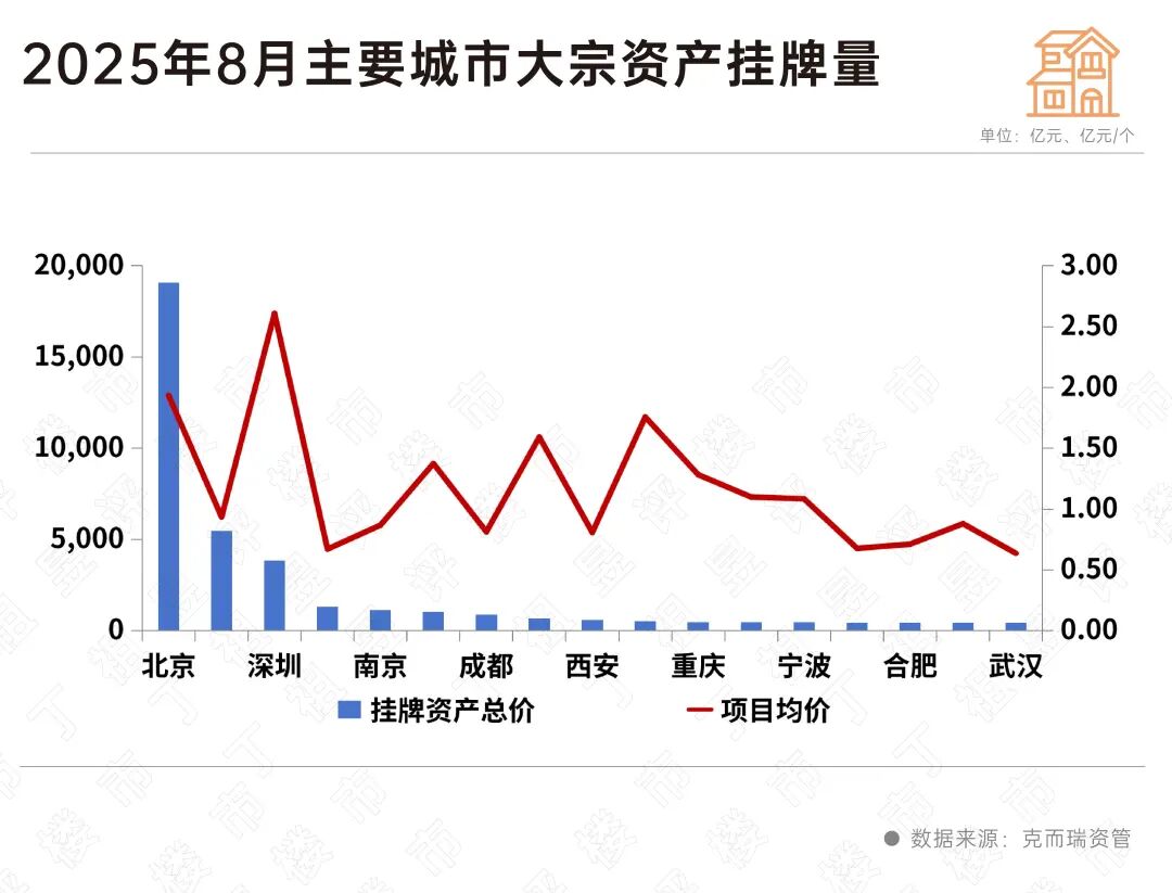 从挂牌情况来看,截至2025年8月末,中国内地32城大宗物业挂牌总价突破4万亿元,环比增加2.3%,同比增加71%,挂牌环比增速连续3个月收窄。