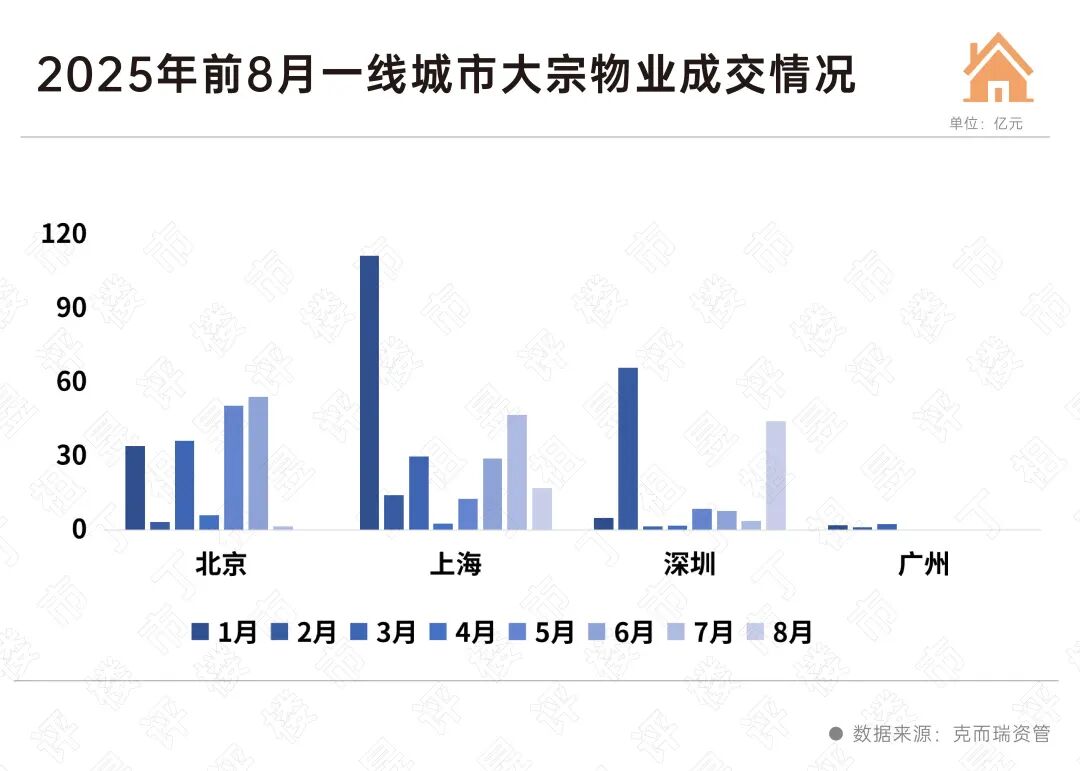 从城市的来看,上海凭借其在中国经济与金融体系中的核心地位以及优质资产的持续吸引力,依旧是大宗物业投资者的首选目标城市,前8月大宗物业成交金额达到264.1亿元,大宗交易保持活跃。