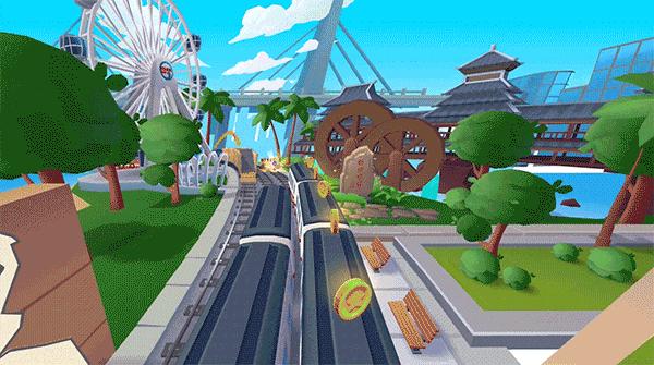 而聊到跑酷类游戏,几乎同一时期的《地铁跑酷》也不可不谈。与《神庙逃亡》相比,《地铁跑酷》选择了更具有辨识度的动画风,融合了街头题材,并通过「三线轨道切换」进一步简化游戏操作。彼时,游戏上线仅八个月下载量即突破一亿,日活月活都维持在千万级别。