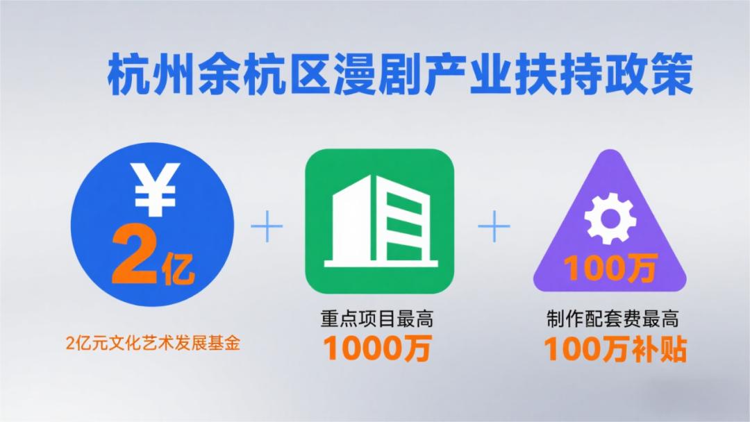 一些地方政府也开始针对AI漫剧发行扶持政策,如杭州余杭区设立了2亿元的文化艺术发展基金,重点项目至多可达1000万扶持,制作配套费也可补贴百万元。塔尔西斯动漫已申请了相关扶持。