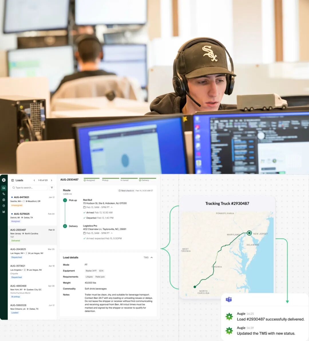 运输途中,以前操作员要不停打电话问司机“到哪了”,或者催仓库确认进度。Augie可以定时发邮件、打电话、发消息,把这些例行沟通全接手。