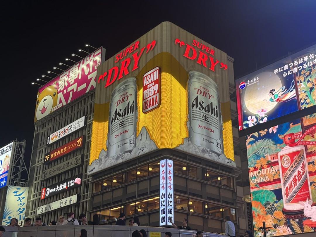 日前,小食代在日本大阪市面留意到,无论是街头巷尾的餐饮店还是便利店,都能看到朝日啤酒的身影。在大阪核心商圈道顿崛显眼位置,也能看到朝日啤酒的广告在循环播放。不止日本市场,目前朝日啤酒的版图已延伸至全球50多个国家和地区,成为国际啤酒市场中的日系代表品牌。