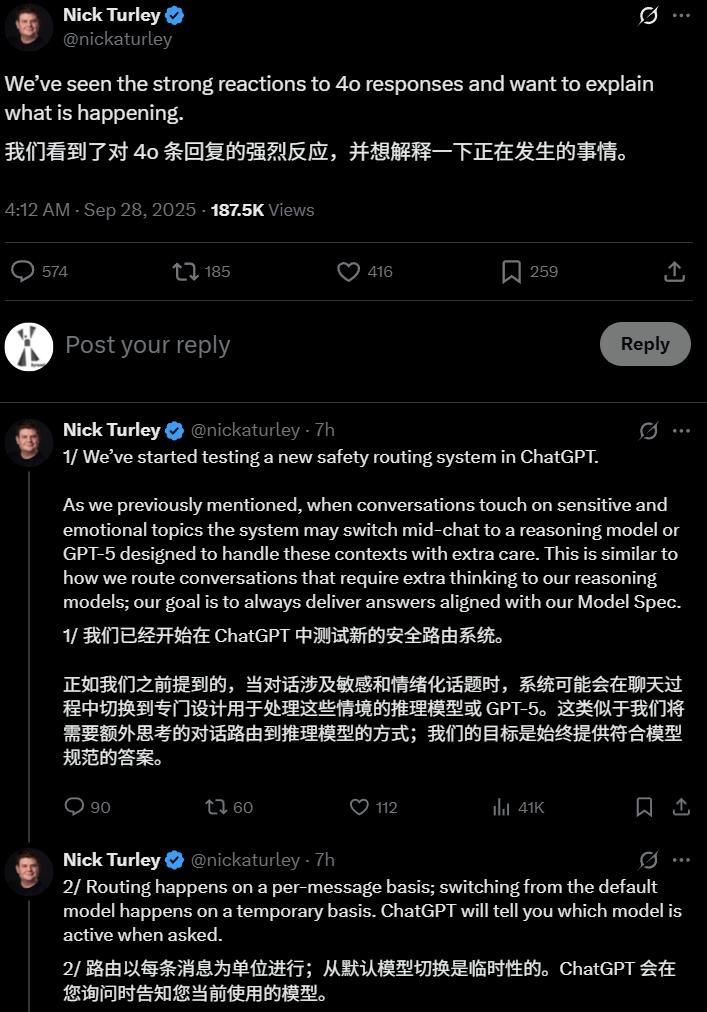不过 ChatGPT App 负责人 Nick Turley 倒是在 X 上做了比较间接的回应,他表示 ChatGPT 会在用户明确询问时告知其当前使用的模型。