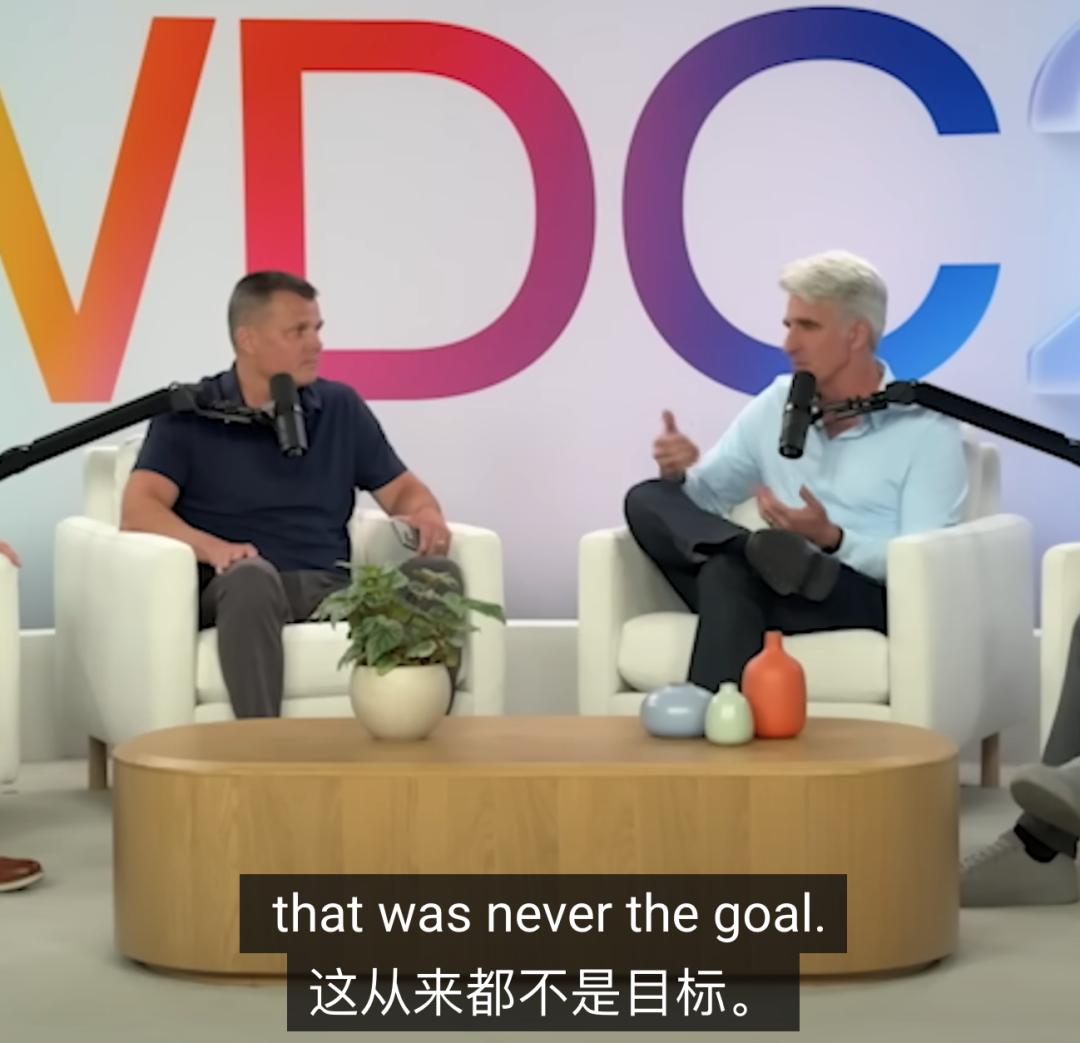 在今年 WWDC 上,苹果软件高级副总裁 Craig Federighi 接受采访时就说过,打造聊天机器人「从来不是,也不会是」苹果的目标。
