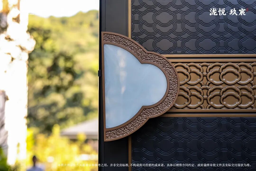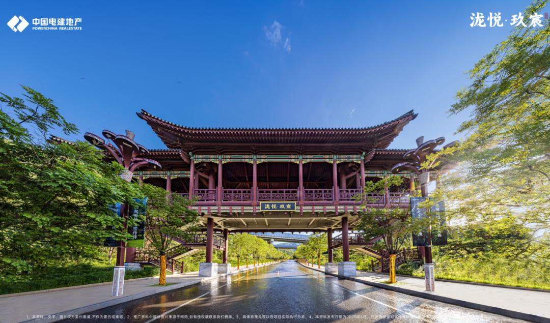 电建泷悦玖宸,于半山归家开启处,复刻古时官邸门庭规制,以“牌楼”著门,飞檐斗拱如鹏展翼,配以龙纹牌匾着“泷悦·玖宸”四字,庄重与威仪感油然而起。入门之后,一条国槐大道通往半山桃源。春夏时节,居者归家,半山绿荫作伴,一千年前王维笔下那“槐阴覆庭除,幽草当阶绿”的幽居生活,在此兑现。每次归家,都是一场尊崇与惬意的际遇。