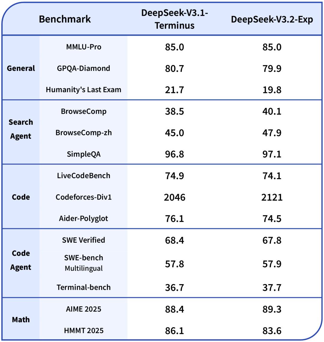 为了严谨地评估引入稀疏注意力带来的影响,DeepSeek特意把DeepSeek-V3.2-Exp的训练设置与V3.1-Terminus进行了严格的对齐。