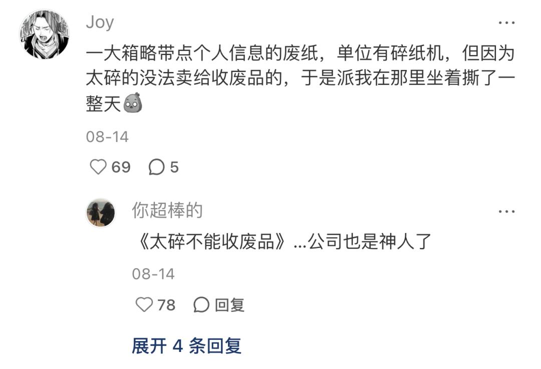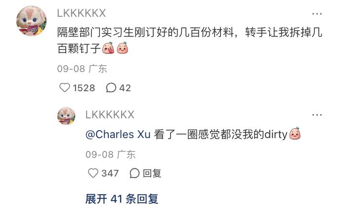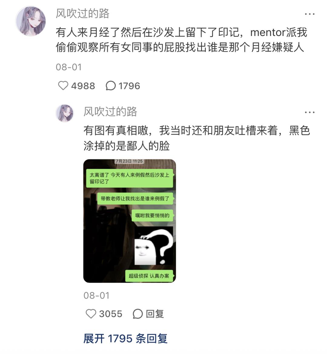 正式员工呢,脑袋上想共情实习生,屁股上却不太允许:这些零碎的杂事,如果实习生不干,就只能落在他们头上。