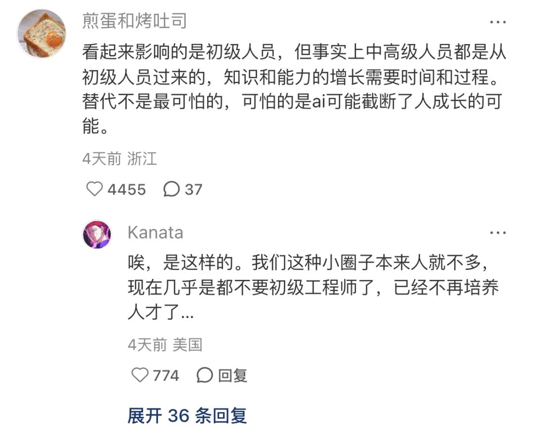 AI 完成了核心环节,留给实习生的只剩下dirty work。其实几百年前也一样:每一次技术迭代,最先被压缩的往往就是新人掌握技能的空间。