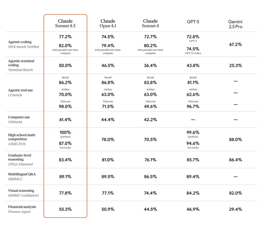 Claude Sonnet 4.5在编码、智能体能力、计算机使用和安全性方面实现了全面跃升。