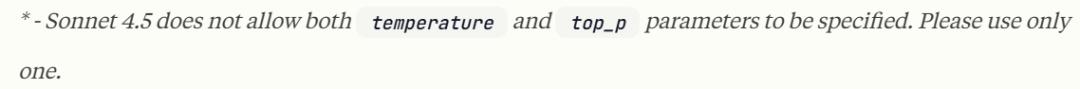 需要注意的是,Sonnet 4.5不再允许同时指定temperature和top_p参数,用户应选择其一。
