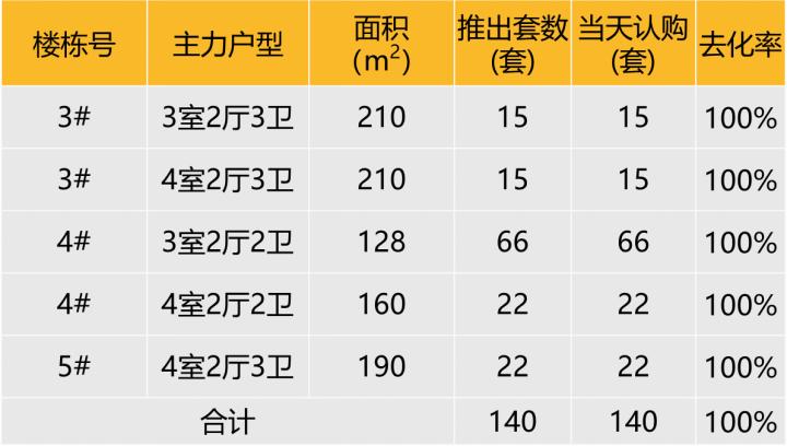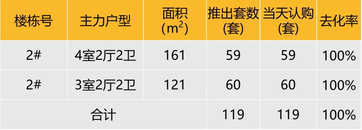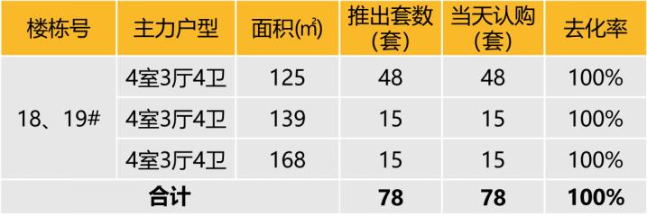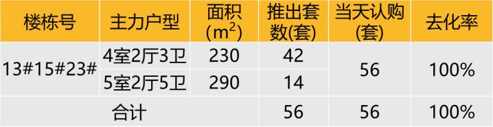 本次推出户型面积及开盘当天认购去化情况