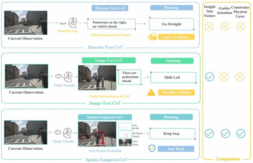 核心问题:面向与物理世界深度交互的自动驾驶,思考过程更应接近 “模拟与想象” 的视觉推演,而非纯符号逻辑?