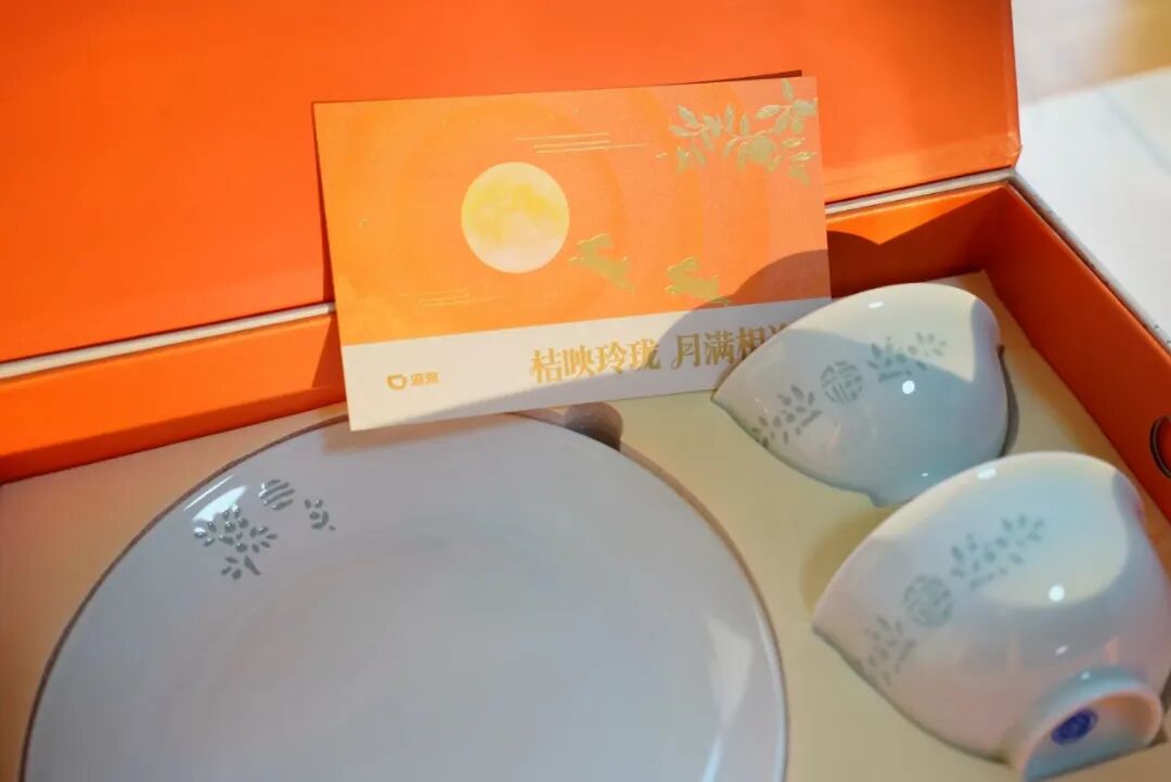 礼盒里安置有一张印有明月的中秋贺卡,还有色泽素雅的大小餐具,作为中秋家礼再妥帖不过。