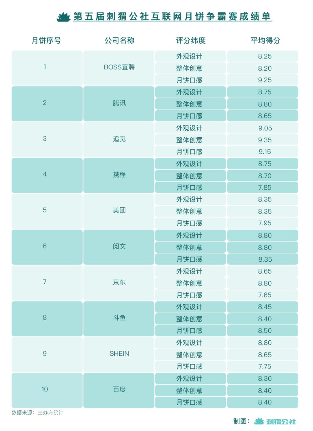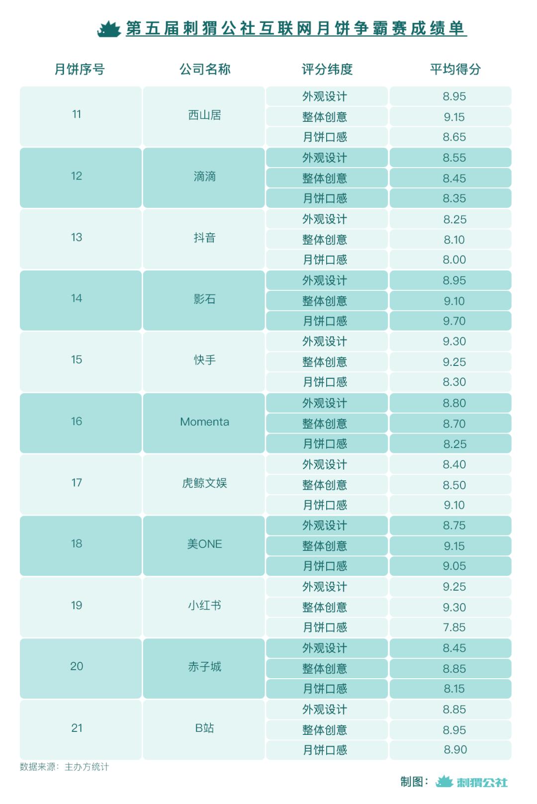 附:第五届刺猬公社互联网月饼争霸赛成绩单——