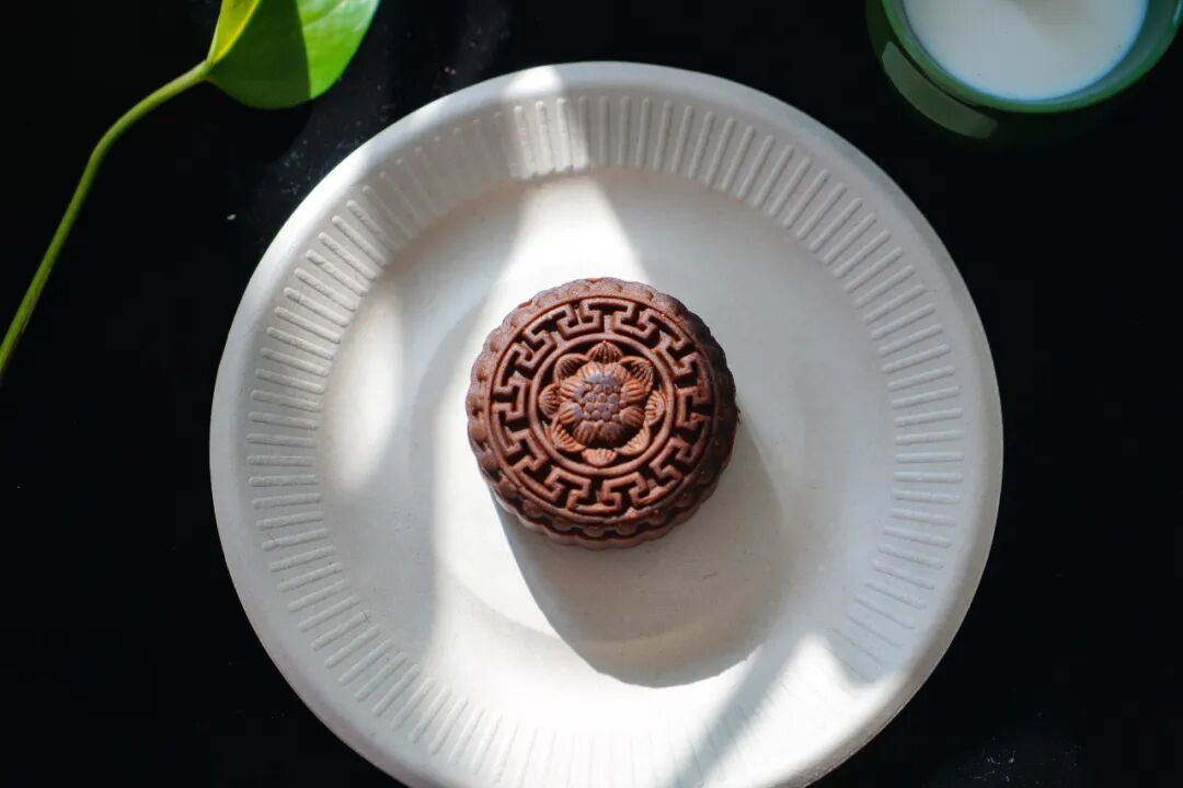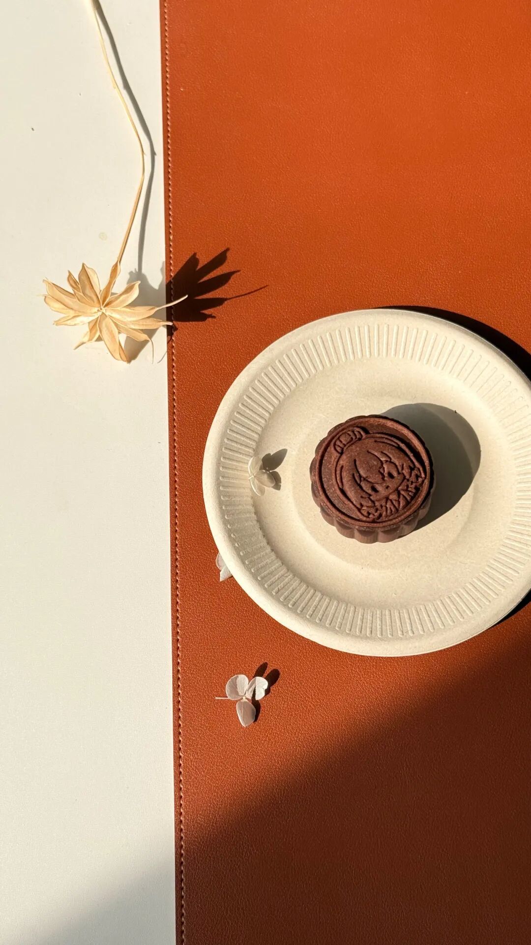 刚一端上来,深邃的棕褐色调就泄露了这块月饼的口味密码。一口咬下去,流心的巧克力馅几乎收获了全场好评,甚至得到了编辑部对月饼的最高评价:“不像月饼!”