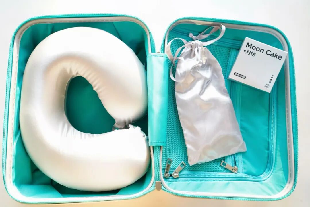 打开行李箱,以银色U形枕为代表的旅行好物闪亮登场。没错,这个装备包给旅行爱好者提供的帮助,还真不只是一句口号。
