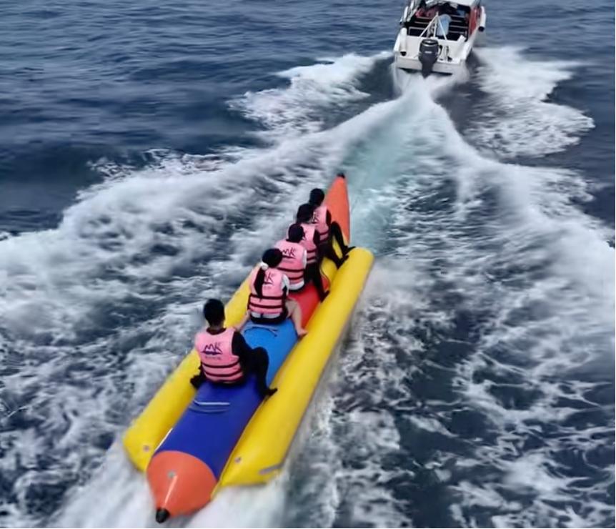 这里面的基础款,是在岛上划出的海上浴场里一直游到海水变蓝,或是玩玩摩托艇香蕉船这样略带刺激性的项目。