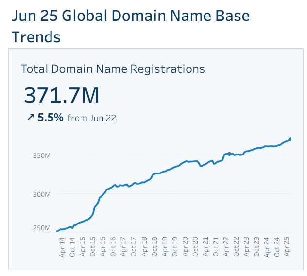 是啊,那是因为所有的创业公司都转型去做 AI 了。这是从投资者的“错失恐惧症”中榨取资金的唯一途径。但是,域名*总量*是否以前所未有的速度增长了呢?不,并没有。去看看那张新域名图表吧。