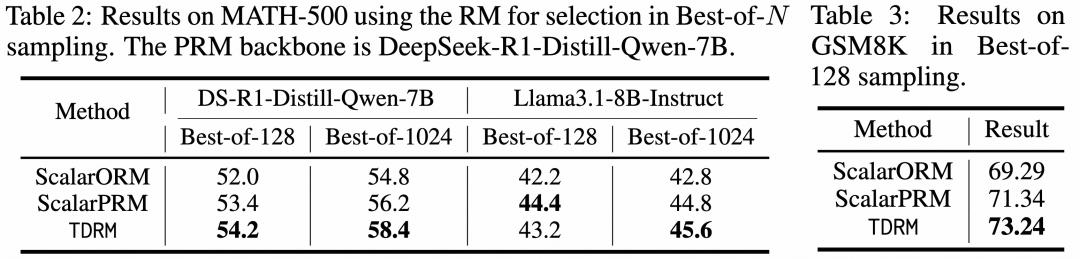 通过观察不同模型与数据集的 Best-of-N 采样结果,研究团队为 TDRM 的优越性提供了实证依据。