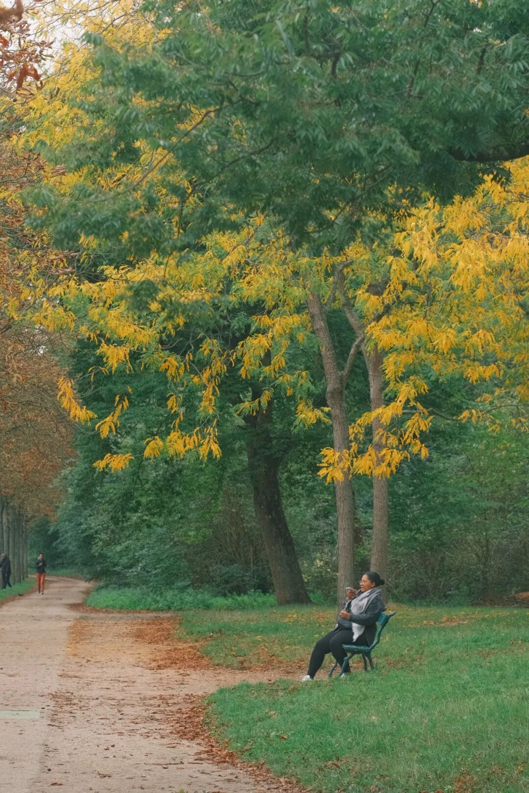 深秋的黄叶,巴黎标志性绿色椅子,看书的人,奔跑的孩子。围着喷水池坐一圈,阳光下脱去沉重的外套,就是属于自己的午后。