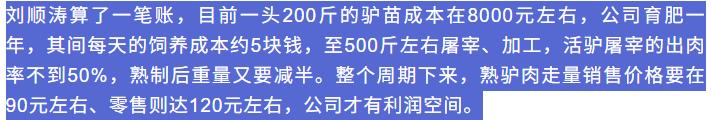 即成年驴价格45元左右,驴驹价格却在65元上下,加上其他成本,驴肉价格定然攀升。