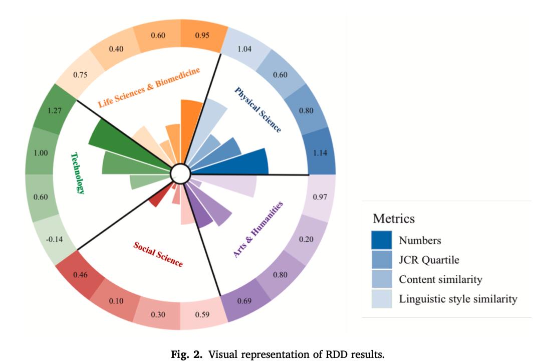 他们将2022年12月ChatGPT-3.5的发布作为一个天然的“时间断点”。一篇论文发表在该日期之前还是之后,对于单个学者而言,存在着诸多其无法控制的偶然因素(如审稿周期),这就近似构成了一个随机分配的“实验组”(有机会使用AI)和“对照组”(无法使用AI)。