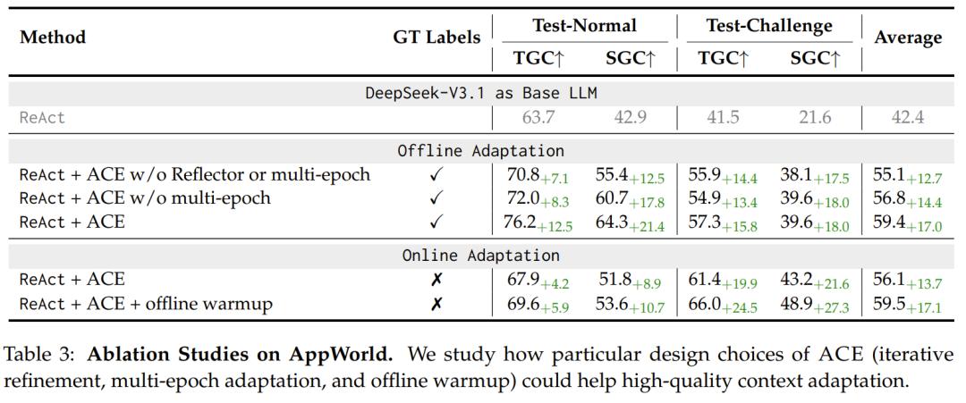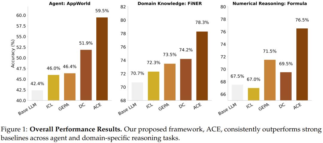 该团队提出的 ACE(Agentic Context Engineering) 框架能够实现可扩展且高效的上下文自适应,并且离线(如系统提示优化)与在线(如测试时记忆自适应)场景都适用。
