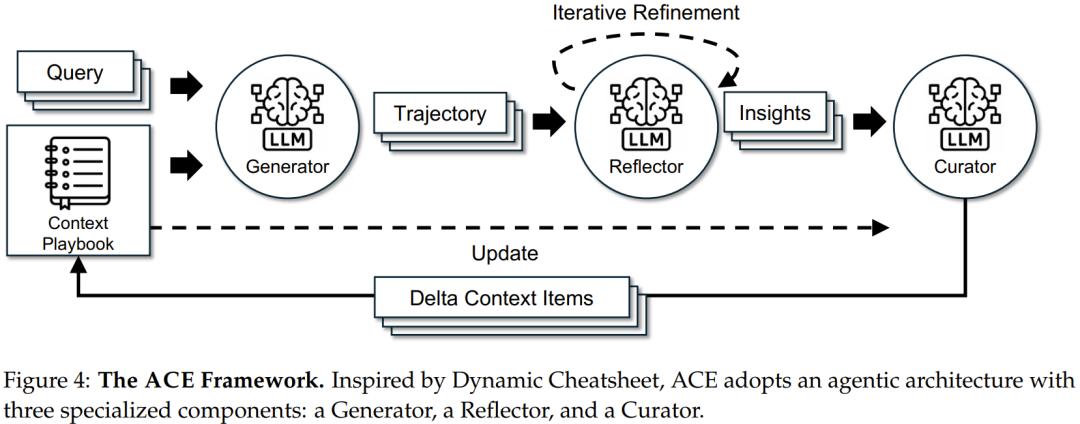 基于 Dynamic Cheatsheet(参阅arXiv:2504.07952)的 agentic 架构,ACE 引入三种协作角色: