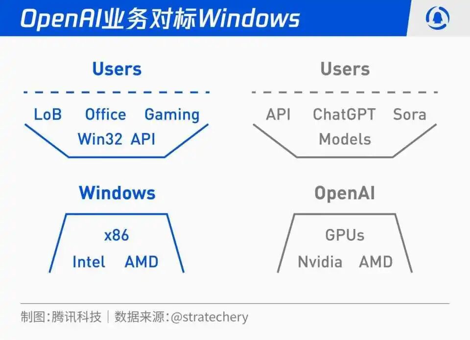 Stratechery创始人本·辛普森在其文章中将现在的OpenAI类比成Windows——预示它们将进化成一个系统。