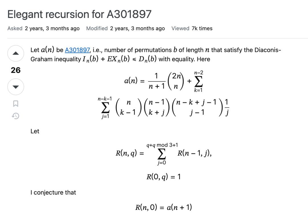 随后,他开始使用GPT-4处理一些自己熟悉领域的数学问题,比如下面这个问题:证明递归式(定义R)能够推导出a(n+1)。